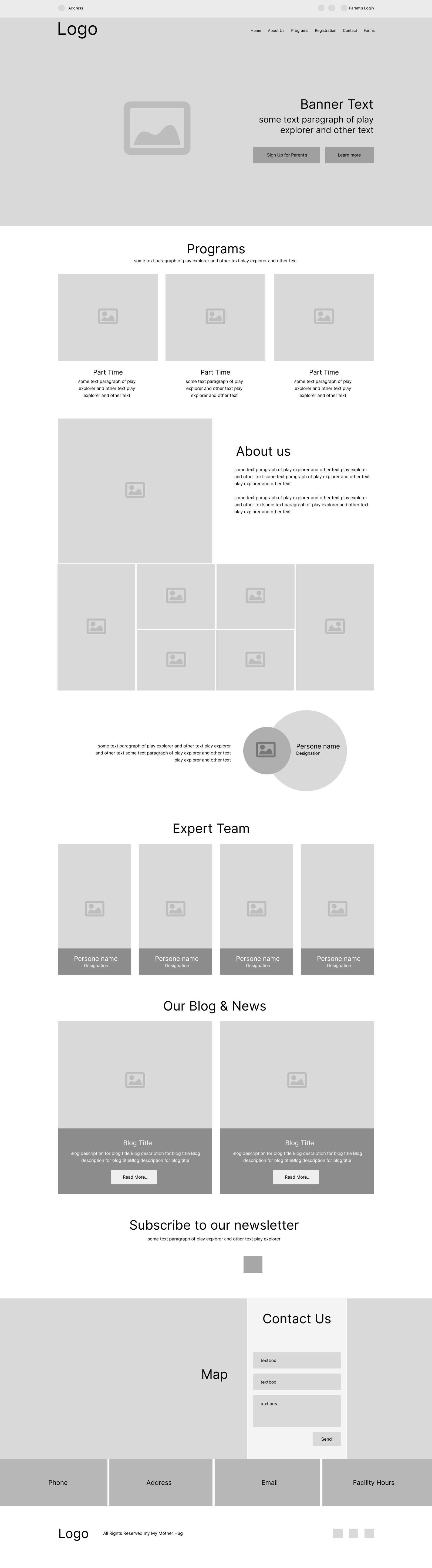 Design Process: Wireframes are first created to outline the parent login, admission form, and appointment booking process. These are then shared with the client for review and feedback. After approval, the visual design is developed to bring the final look and experience to life.