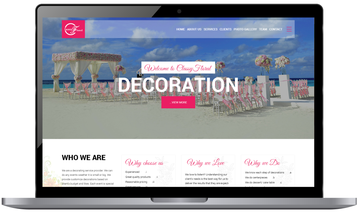 Classy Floral is flower Decoration and Event website
