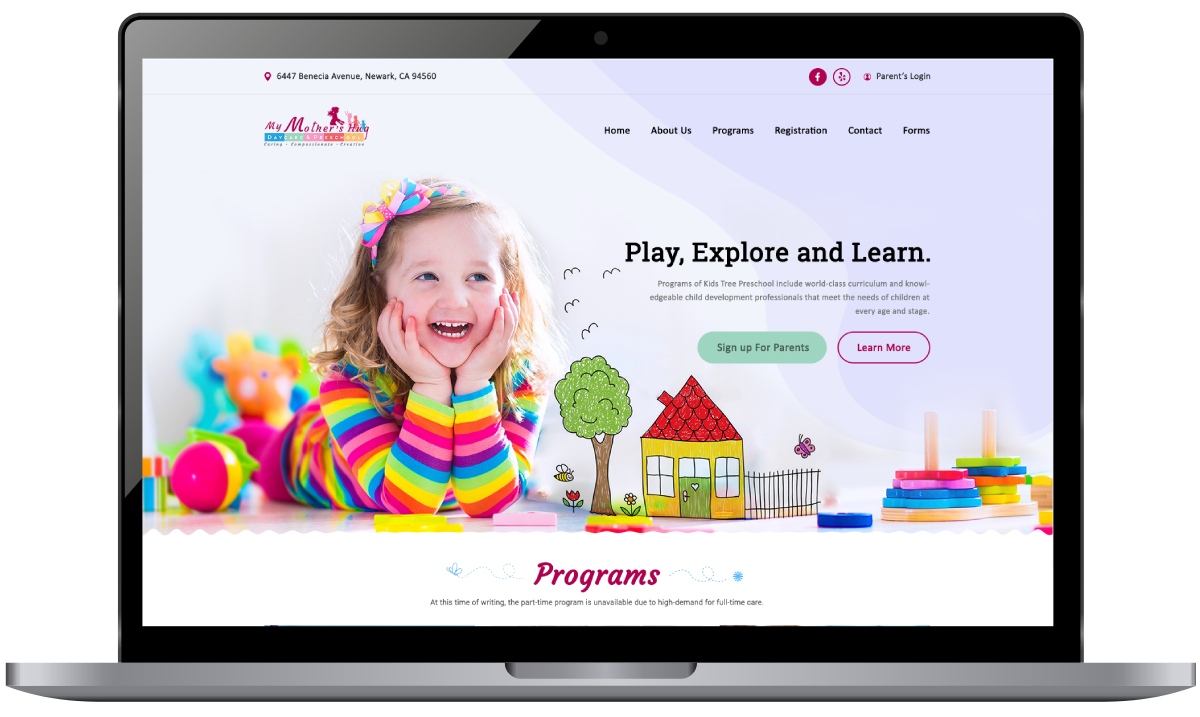 My Mother Hug is Pre school website and parent's admin panel